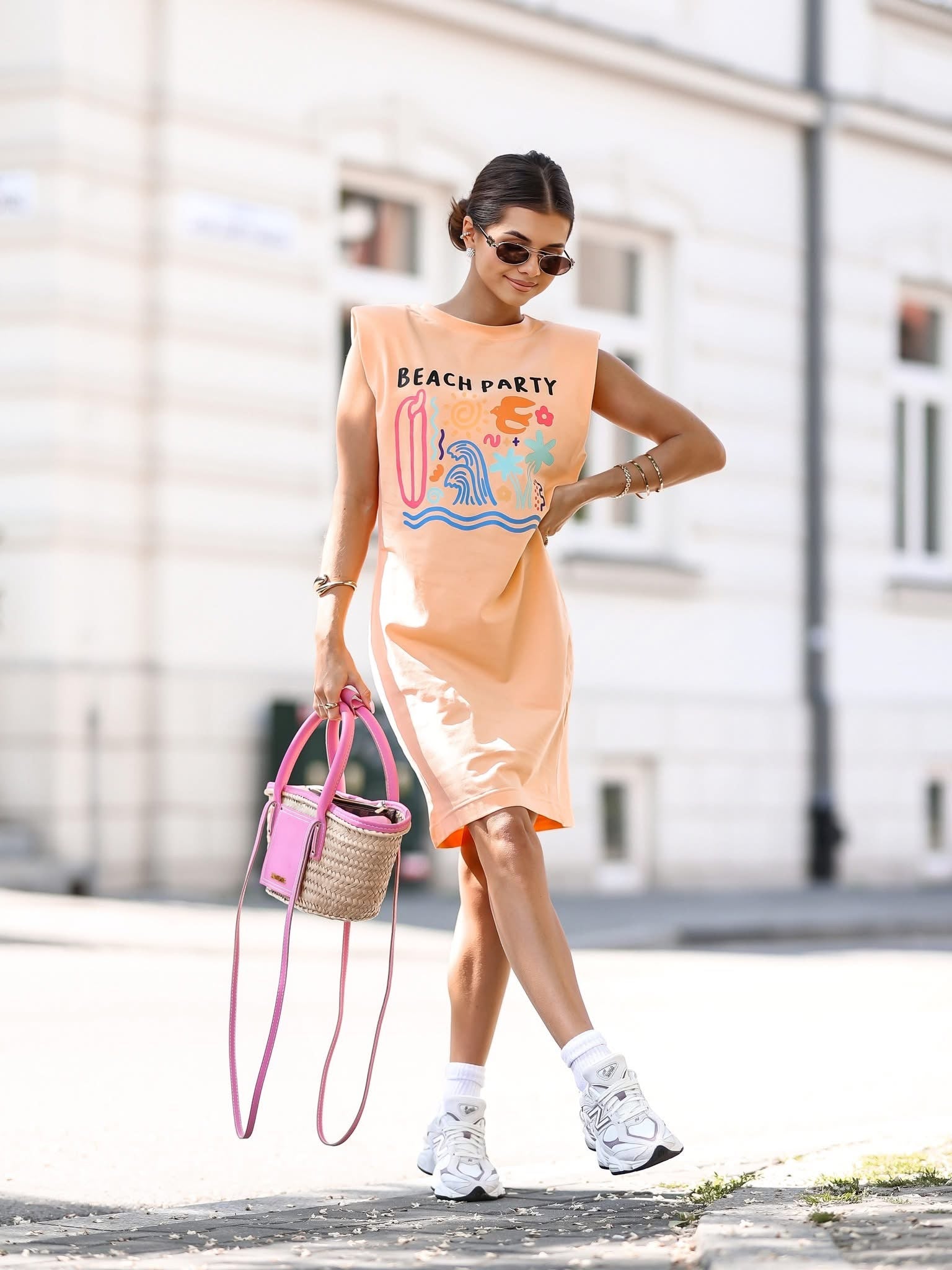 Laza, mégis nőies – ez a ruha tökéletes választás meleg napokra! Kényelmes ujjatlan fazon, sportos vonalvezetéssel és látványos felirattal. Tökéletes utcai viseletre, de egy stílusos sneakerrel vagy szandállal kombinálva igazi nyári kedvenc lesz.