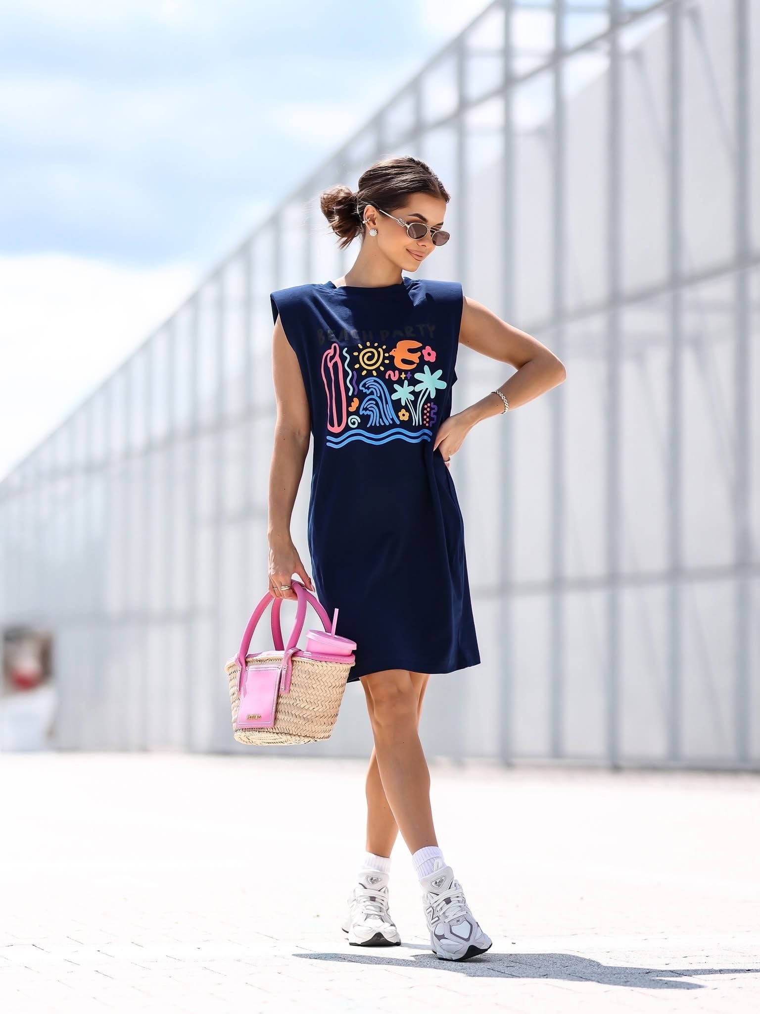Laza, mégis nőies – ez a ruha tökéletes választás meleg napokra! Kényelmes ujjatlan fazon, sportos vonalvezetéssel és látványos felirattal. Tökéletes utcai viseletre, de egy stílusos sneakerrel vagy szandállal kombinálva igazi nyári kedvenc lesz.
